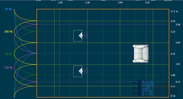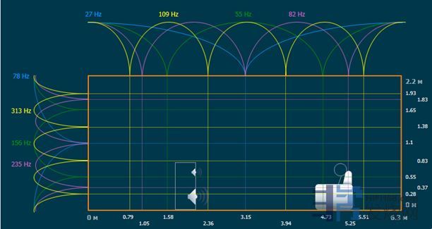 盆友根据房子的尺寸,测算了一下房子的驻波分布情况,一波未平,一波又起,哈是驻波,只能将就点慢慢调吧。俺又不是龟田大佐,动不动就挖地三尺。土建的工作量太大了,打死也不搞。