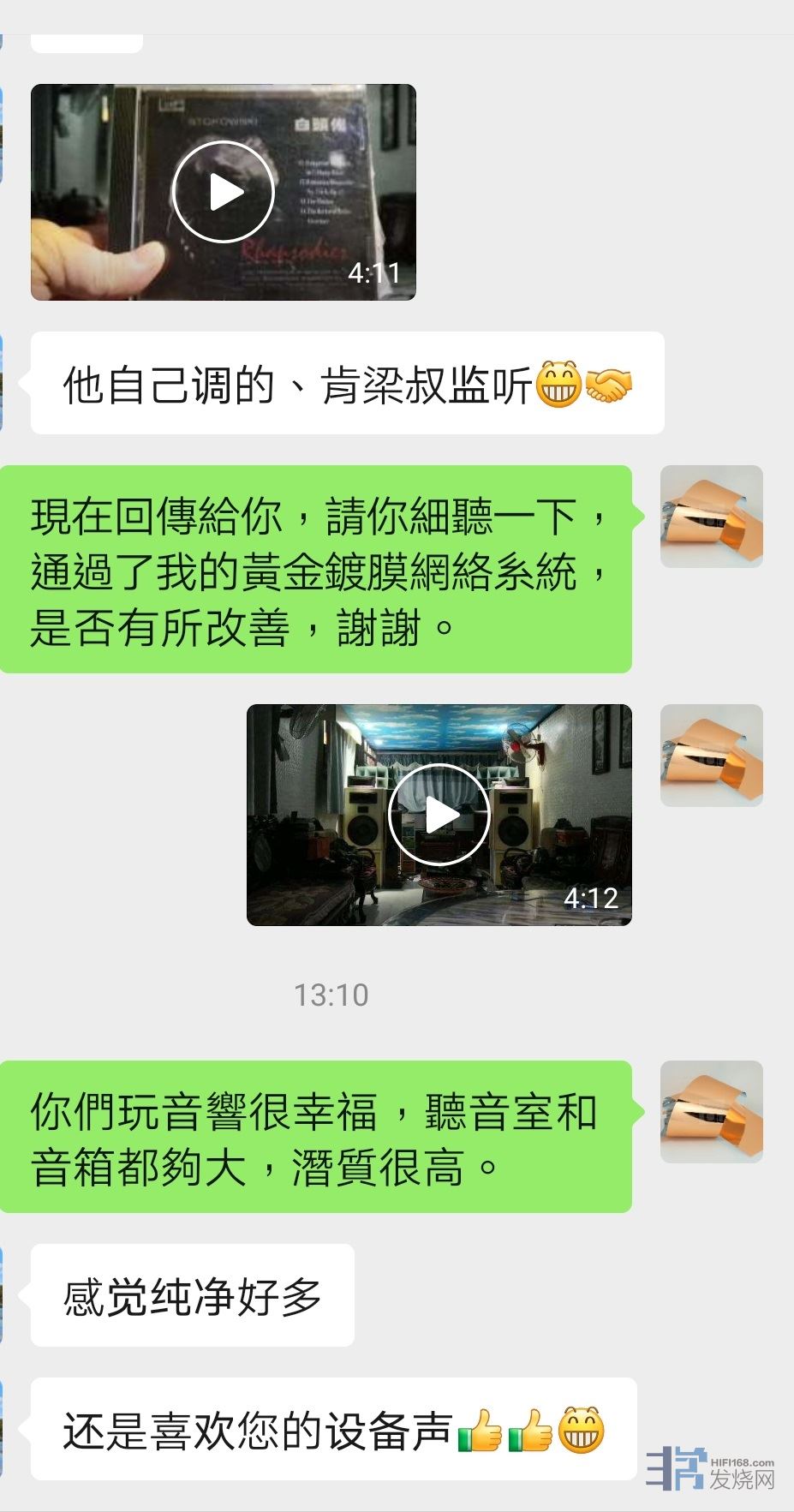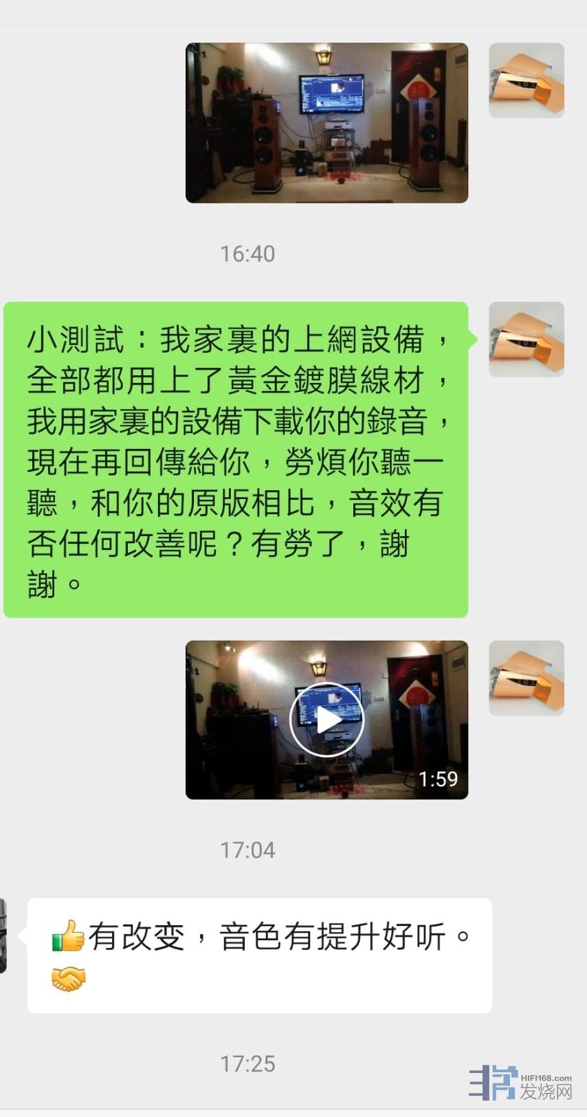 从前只尝试过,将计算机、路由器(wifi)、数据机等的所有线材和器材,无论从网上下载、光盘或数字影音档案拷录等,全部都用上黄金镀膜技术作后期处理改良之后,再以后期制作方式制作出来光盘和数字档案,在音质和画质方面效果都有明显的改善我提升。
