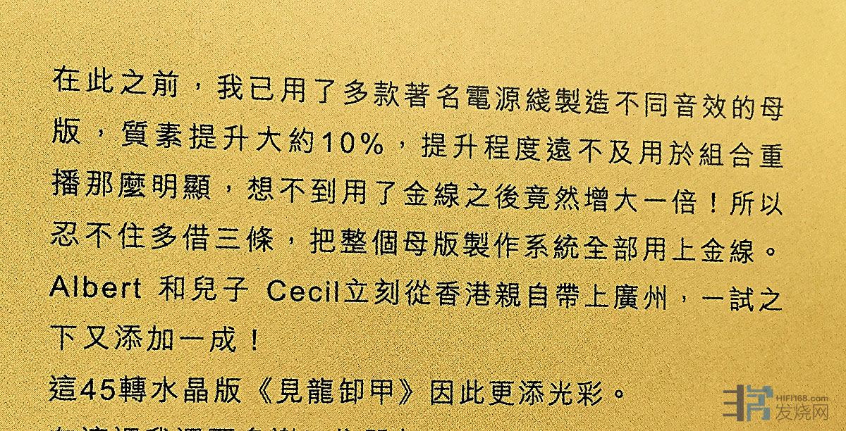 "去年底家访金线梁,亲耳听黄金镀膜包插头的音效,前辈亦破例包了2条我自用的电源缐,感谢!