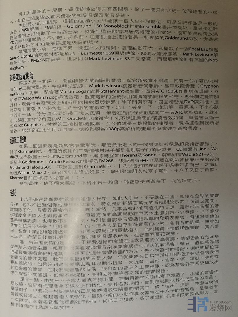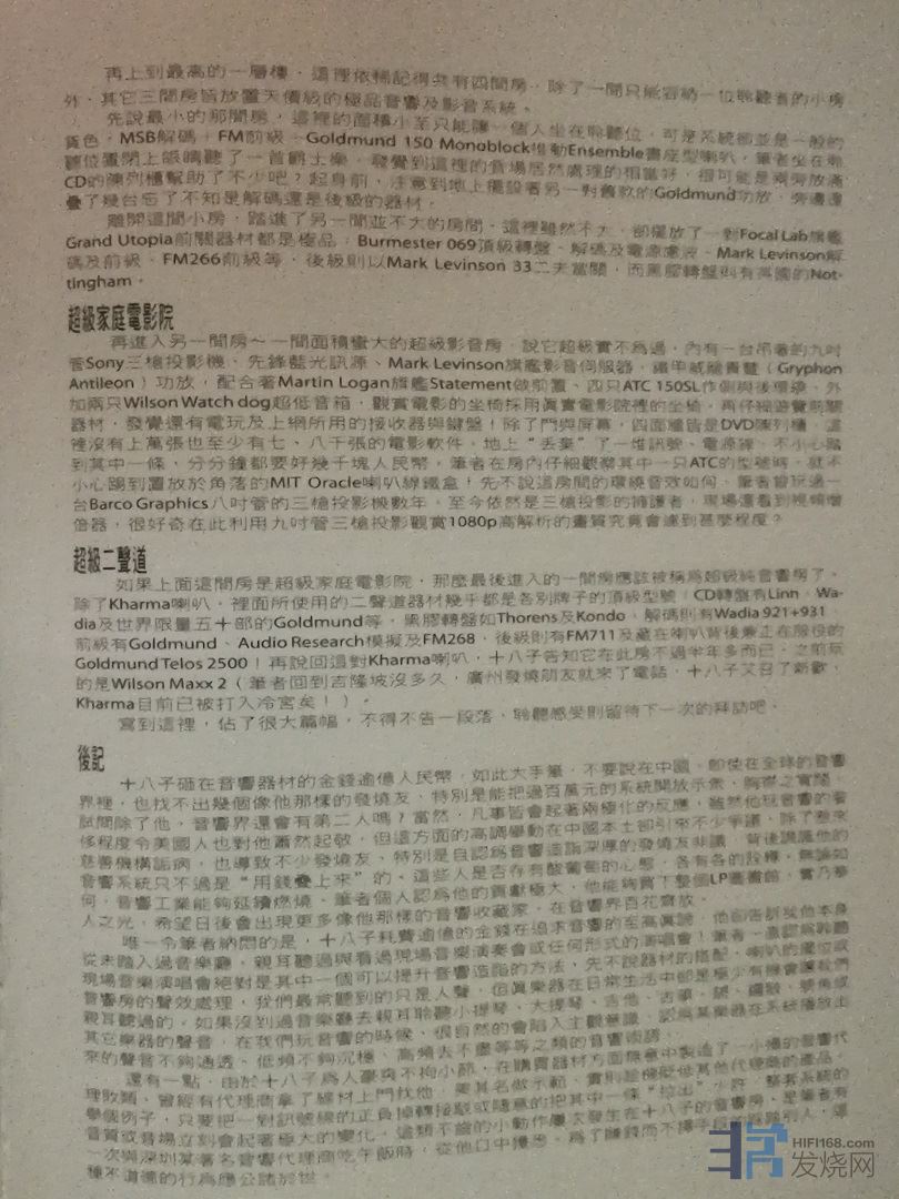 再上到最高的一层楼,这里依稀记得共有四间房,除了一间只能容纳一位聆听者的小房外,其它三间房皆放置天价 级的极品音响及影音系统。