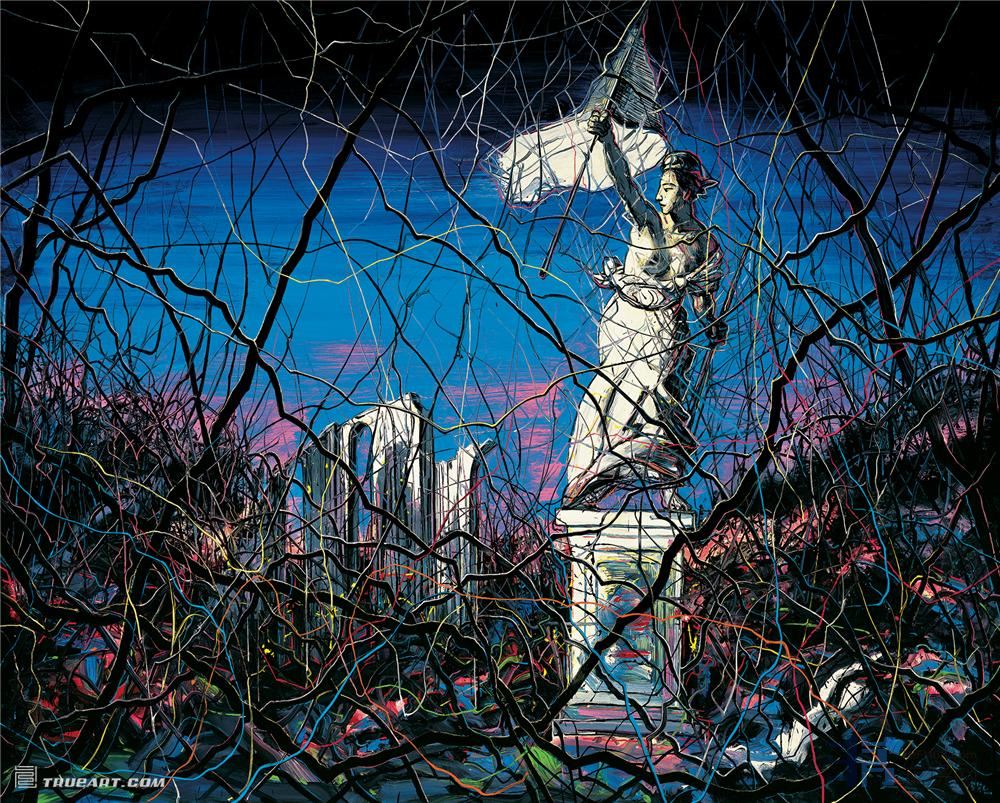 1986年以后,我开始反省前段过度极端自我的现代主义时期,逐渐接触一些东方的绘画和思想,从传统文化中寻找自己的位置和价值。1986年到1989年的上半年,我把它称之为梦幻时期。从个人深渊到彼岸神的形而上的世界去寻找一种精神上的意义,重新去思考生与死的问题,因为之前受西方海德格尔存在主义和弗洛伊德精神分析思想的影响比较多,后来接触禅宗等宗教的东西,对生、死、爱的问题有了新的理解,这段时期的作品语言上比较浪漫、古典。