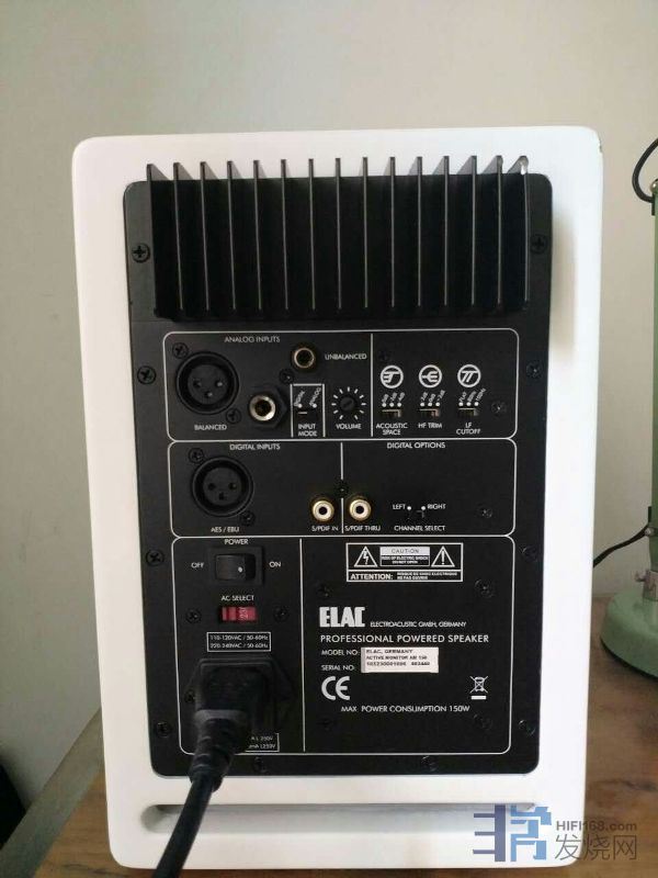 电话微信:1868O85O165 直接从德国带回,白色钢琴漆,外观大气贵族气质!1. ELAC AM 150音箱分别提供了模拟接口和数字接口,其中模拟接口提供RCA非平衡和XLR平衡两种方式,而数字接口则提供同轴和AES/EBU两种方式,因此用家不用担心AM150与前端设备的兼容性问题。所以,用家可以采用一台高素质的DAC与它搭配,又或者直接通过同轴线(或AES/EBU线)与数字前端(CD转盘、DVD机、数字音频卡等等)相连,这样就能组成一套简洁又高素质的音响系统了。2.ELAC AM150采用二路低音反射式结构,配以全新的130mm强化纤维纸盆低音单元及25mm的丝质振膜高音单元,并内置两台输出功率为50W(低音)和25W(高音)的功放分别进行驱动3.ELAC AM150设有“Acoustic Space”、“HF Trim”和“LF Cutoff”三种音频滤波调节功能,能够适应不同的聆听需要,并能完美地融入各类重播环境中。4.音色特点:毫不张扬,尤其是高频段的声音特别纤细和轻柔,往上的延伸自然平滑,而且柔顺中带有些许暗调的特质低频能量强,劲度十足且带有柔顺性,听起来宽松大气,播放流行音乐及古典相当了得。一口价:4980元