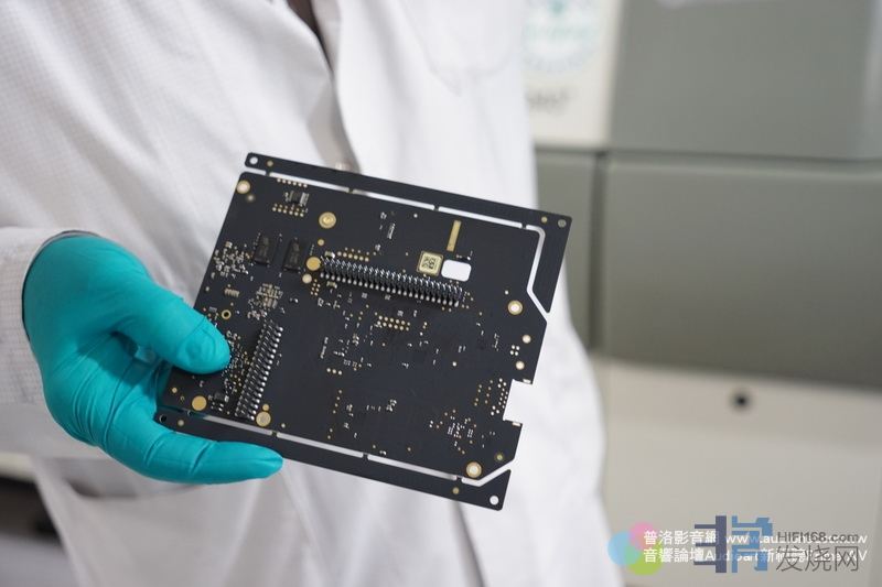 光是那个主体框架就像摩托车引擎一样,铸造出来,内部线路板就安装在这个主体框架上,使用的也是跟功放一样微型表面黏者元件。Pierre说,如果没有使用这种元件,Devialet的产品不可能生产,因为体积会非常庞大。