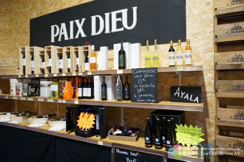 四周都是葡萄酒架子,上面都有標價,從十歐元以下到幾十歐元都有,用餐時想喝,就從架子上拿,價格一樣,沒有加成,十分公道。