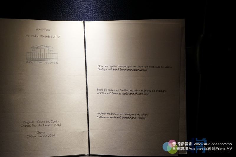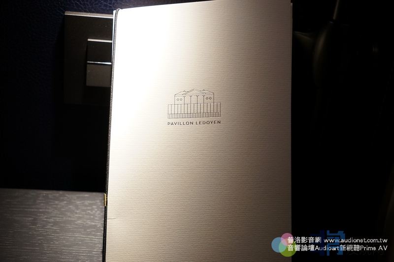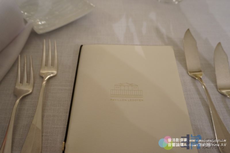 到了餐廳,我才知道是米其林三星餐廳Pavillon Ledoyen。這家三星餐廳就在巴黎小皇宮旁邊,也是在協和廣場旁邊,距離摩天輪大概、二百公尺遠吧?是一棟獨立屋,很好找。這棟獨立屋早在1792年就已經存在了,屬於二樓式建築。