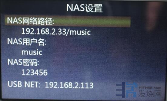 那在这里可以设置 NAS路径为 192.168.1.33/music , 这个/符号可以在遥控器的0数字按键中输入,用户名和密码根据各自NAS中设置的用户名和密码来设置;