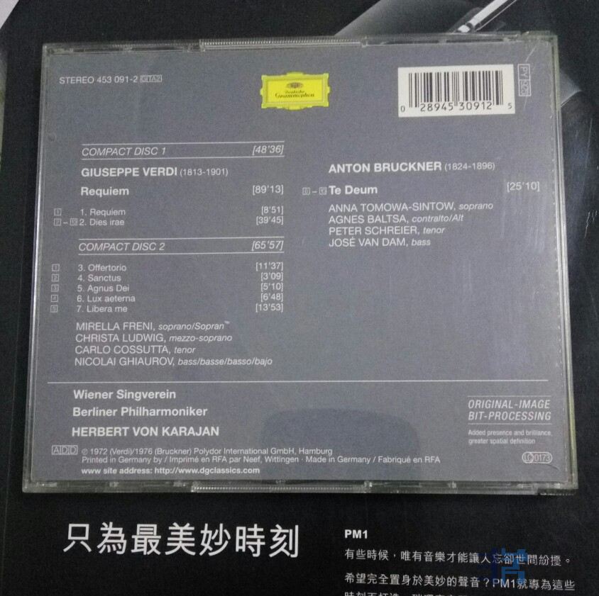 2.威尔第 安魂曲 布鲁克纳 卡拉场 Verdi requiem karajan 半银圈 PMDC 品相:完美!85元!