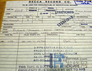 Decca Session Master Data Sheet▲