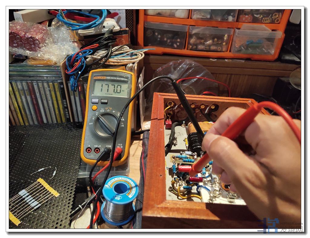 上次将两只松下22uF退耦电容换下、换上艾华之后,由于性能强劲,令前级屏压供电提升了二十伏左右,一起飚到近200V。相应工作点(负压、屏流等)亦有相应提升。因此需要相应的调整,降低一些。
