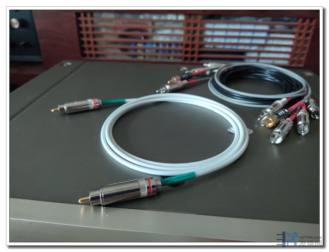 由于便宜,他就在这次新折腾出来的一堆同轴线里挑了两副声音风格刚好是两个类型的:一款是之前讲过的灰色的(宽松、厚暖);另一款就是这款(动态、延伸)。他试听的评价是:灰色是英国声、白色是德国声,刚好搭配他的胆、石两套不同系统。