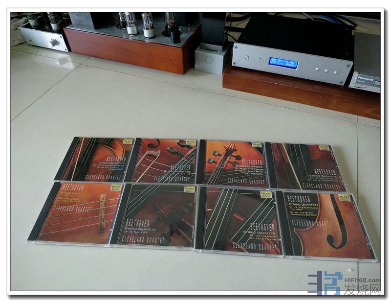 这套作品为克利夫兰乐团四重奏团所演奏,全套共8张。这套专辑的特点,以前我在微信群给朋友们讲过。国内基本找不到,前两年通过国外朋友收集到4张(其中一张估计已经被**借猪),前段时间通过出差英国朋友再去唱片店才搜罗集齐。
