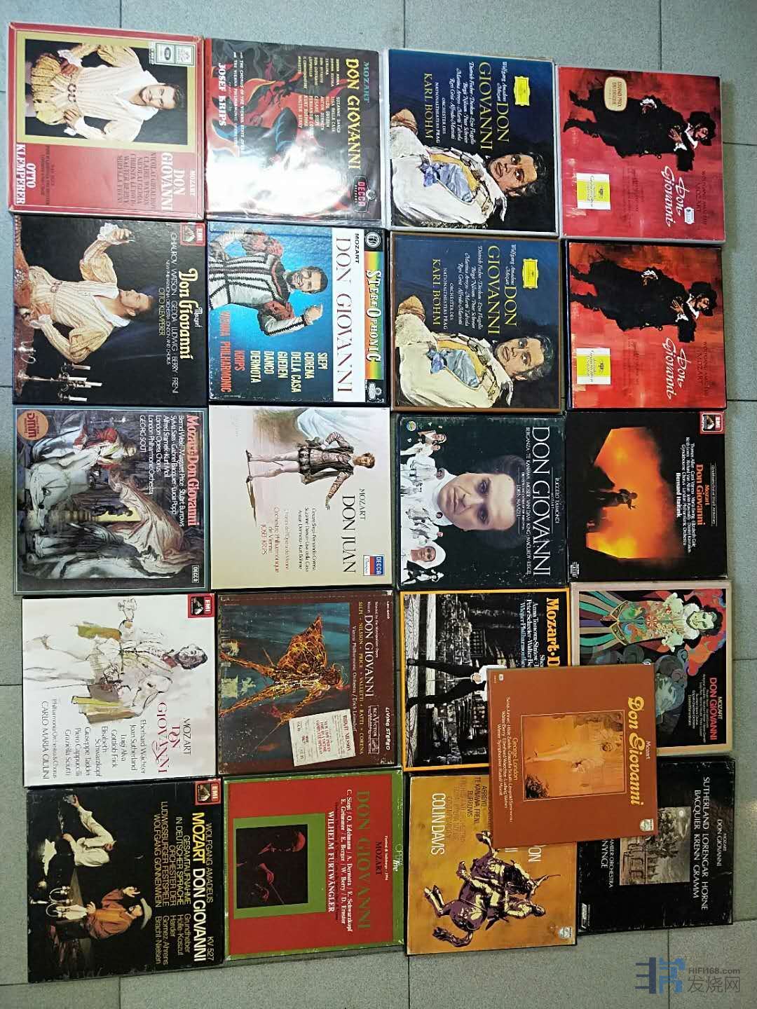 N个版本的莫扎特歌剧《唐乔瓦尼》LP黑胶唱片。    我大概统计了下,目前我收藏了《唐乔瓦尼》全剧的21套黑胶唱片.。