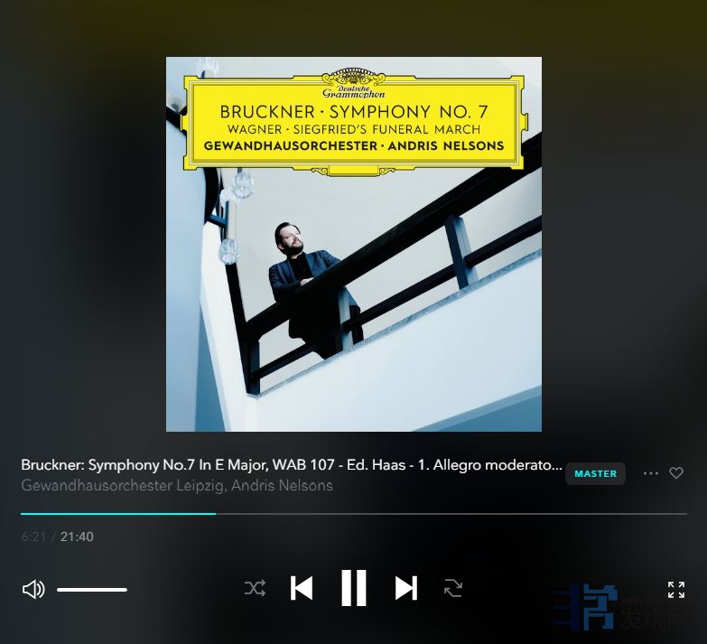 播放时专辑旁边能看到闪亮的MASTER标志: