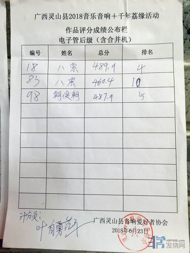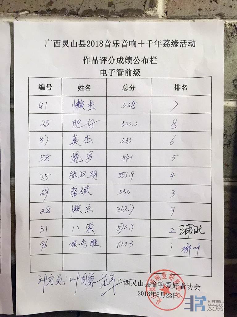 40台机器包括胆前级,胆后级,晶体管前级,晶体管后级,合并机。都要先捡测正常才能参加比较。播放四首曲目,十二大评委评分。整整从早上9.30分比到下午6.30分才正式完成,我有幸参加了,发现评委他们辛苦坚持了一天,不得不佩服烧友的心态。