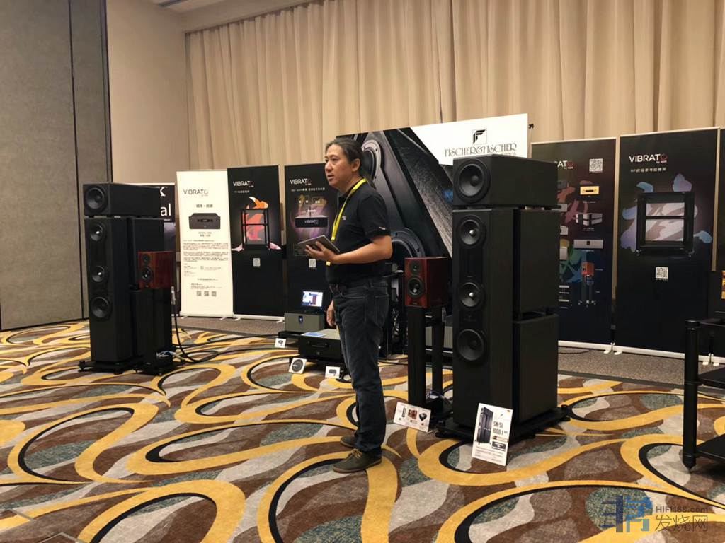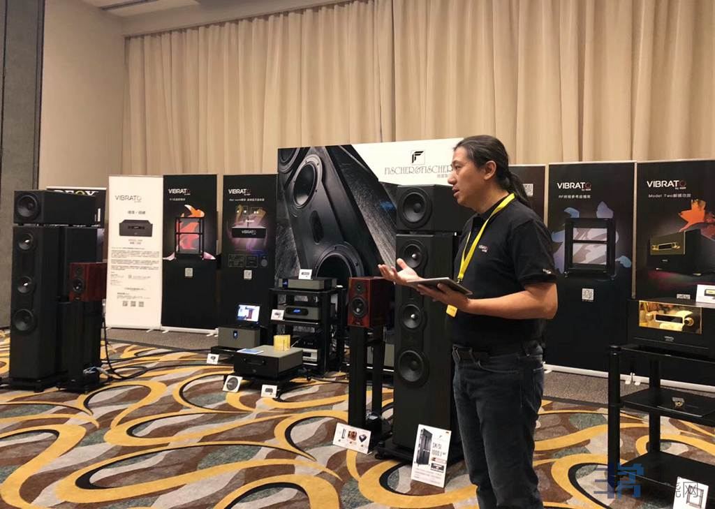 这次香港音响大展代理个个拿出看家本领。大件,豪华,美观,靓声,爆棚的场面宣战。今天富盛音响这个气氛真正令人大开眼界,一台超级蓝牙适配器Vibrato Net ·Work。德国FISCHER&FISCHER炭质板岩旗舰音箱,文杰影音VlBRATC by NSR高比特数播,MODEL ONE功放,文杰VlBRATC by 380后级功放,MODEL TWO旗般功放统统带来香港让大家感受欣赏。