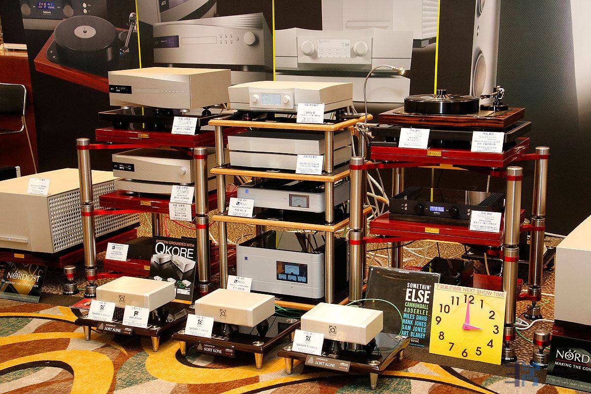 韩国的HIFISTAY展出系列避震器材,这个是Mythology Transform 神话 参考级器材承架,这个架就放在一个大托盘上。