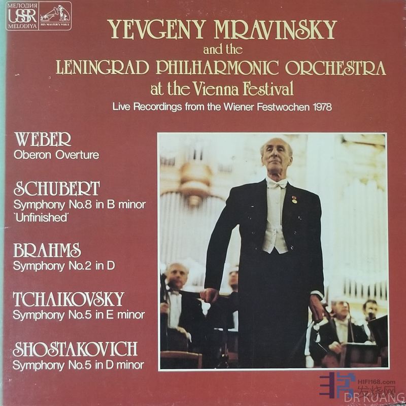 穆拉文斯基认为柴可夫斯基和肖斯塔科维奇两人的第五交响曲是苏联(俄罗斯)最优秀的两部交响曲,这套70年代发行的唱片是他带领乐团在维也纳的现场录音,原版权为旋律公司所有,由EMI购得版权在西方发行,这套现场录音正好收齐这两部指挥家最推崇的作品。