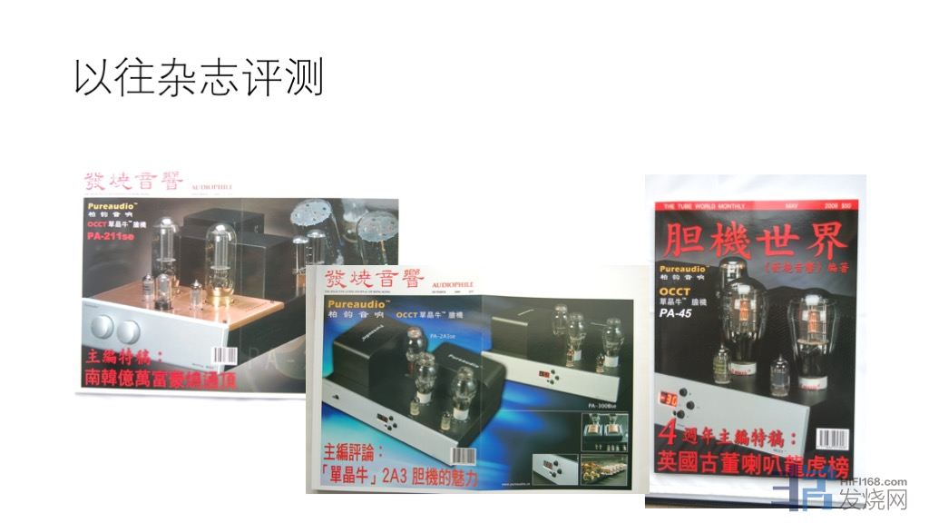 柏韵音频 Pureaudio部门成立于2008年,公司成立之初以设计制作优质性价比高的胆机起步。拳头产品为使用单晶铜材料制作输出牛(已申请技术专利)的系列胆机,包括单端300B,2A3,45,25,211,845。高级胆机调音风格力求体现音色自然、平衡、略带甜美的听感。早期产品着重开发小功率甲类单端机种,再配合日本老品牌Fostex全频喇叭,结合合适的音源就可以组建一套声音精致,音色均衡的音响系统。所以产品一经推出市场就获得一大批追求此类音色的发烧友的支持、追捧。