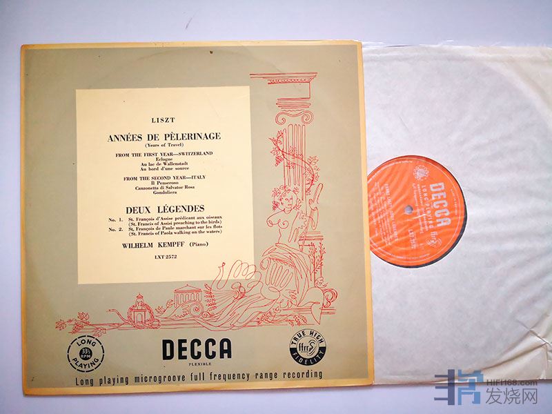339、经典名盘:李斯特《旅行岁月》(第一年瑞士、第二年意大利),肯普夫钢琴,DECCA英国单声道头版,桔金标带沟。比立体声更好听!150元。