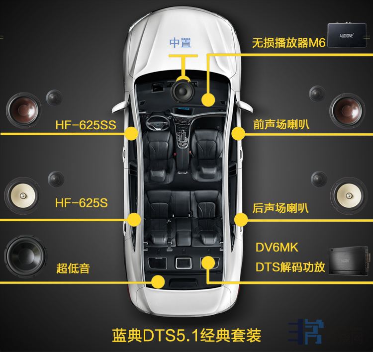 蓝典DTS5.1改装建议方案,这套音响配置的特点:古典、激情、流行、浪漫融为一体,高度还原音乐现场,细节表现丰富,声音饱满,有质感,高中低频平衡自然,音色更是动人温暖,在车上即可享受DTS带来的360度环绕效果,媲美私人影音室。