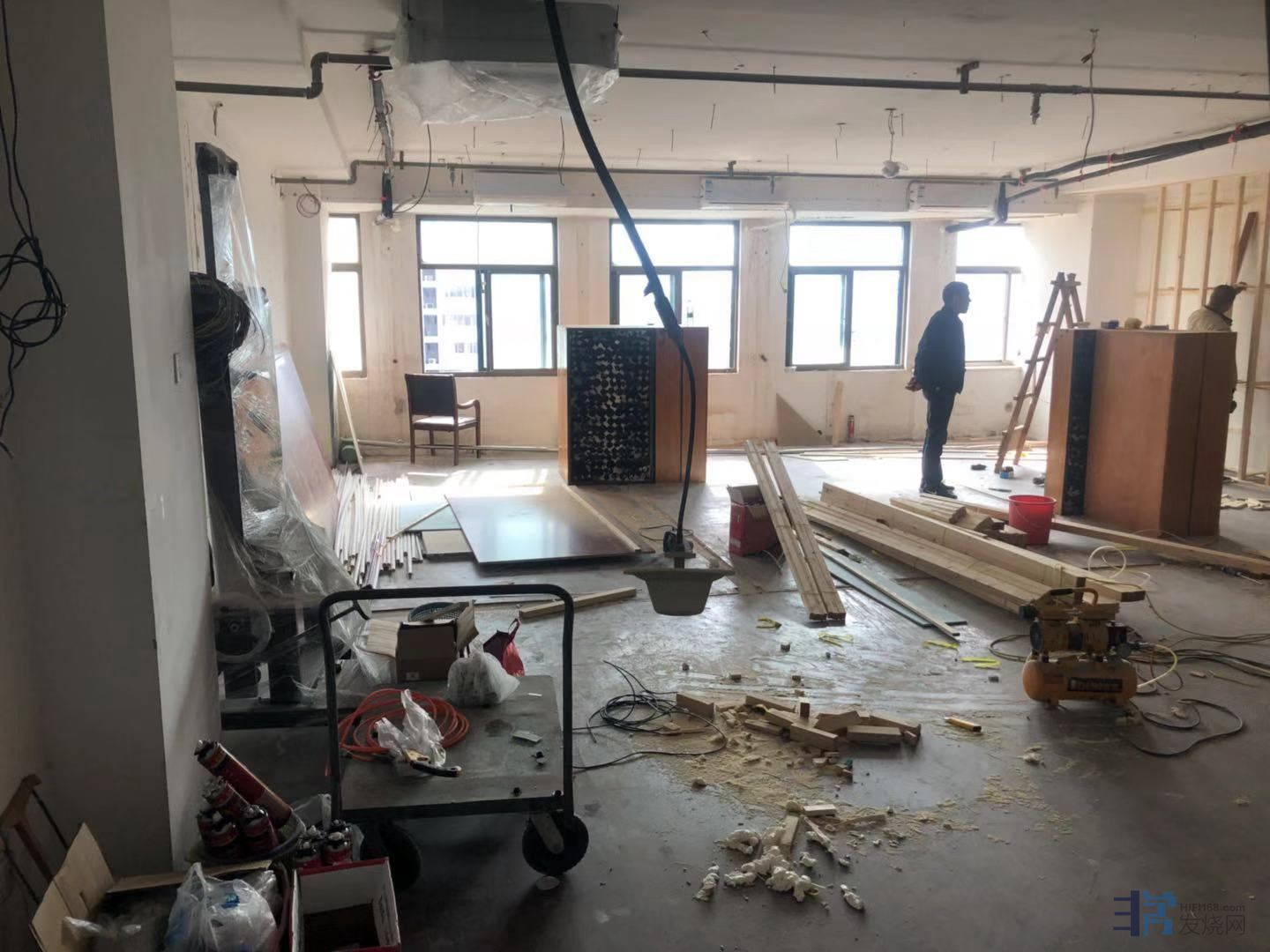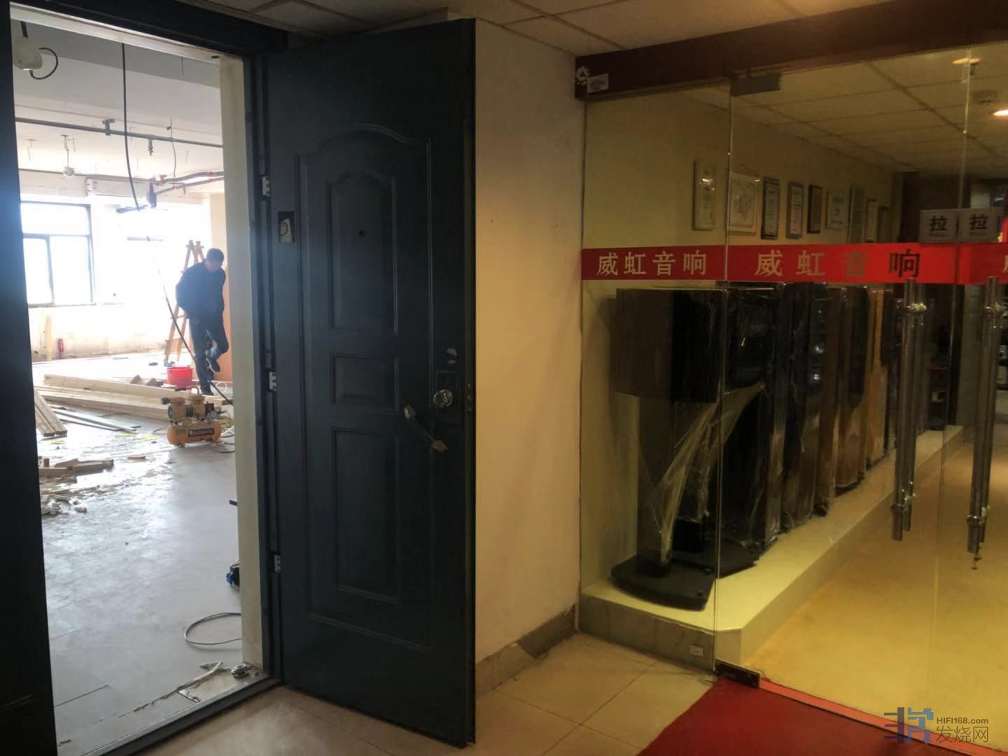 南京威虹音响120平方全新试音间正式动工!!附上店内5个试音间现...