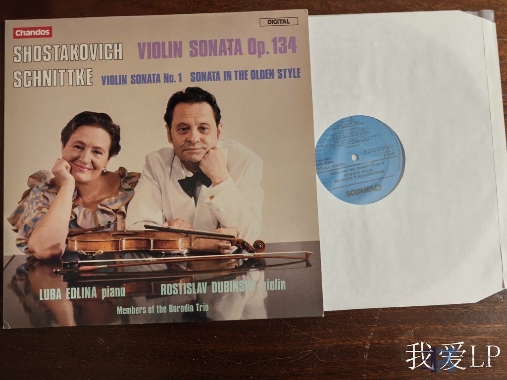 11007,肖斯塔科维奇《小提琴奏鸣曲Op.134》,施尼特《第1号小提琴奏鸣曲》,鲍罗丁三重奏的两位成员埃德琳娜钢琴,杜宾斯基小提琴。Chandos德国头版,NM,280