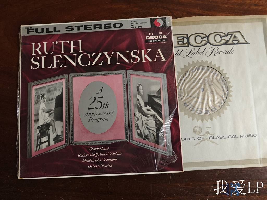 11365,罕见名盘《25周年纪念音乐会》,为纪念露丝.史兰倩丝卡(Ruth Slenczynska,美国著名钢琴家,出生于1925年,是俄罗斯作曲家拉赫玛尼诺夫唯一健在的学生,有“美国第一钢琴夫人”美誉!)年仅8岁时、于1933年11月13日在纽约市政厅引起各界轰动的表演,25年后在同一个音乐厅的录音。美国Decca头版,NM,300