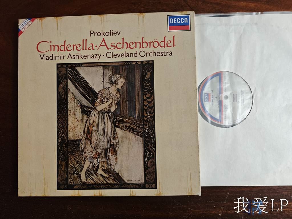 11371,发烧名盘,普罗科菲耶夫《灰姑娘芭蕾组曲》,阿殊肯纳齐指挥克利夫兰乐团,也是科林.富尔穆特操刀在全美音效最好的克利夫兰音乐厅的录音,动态对比极其强烈!堪称数字录音的天花板!Decca荷兰头版,盒装2LP,NM,420