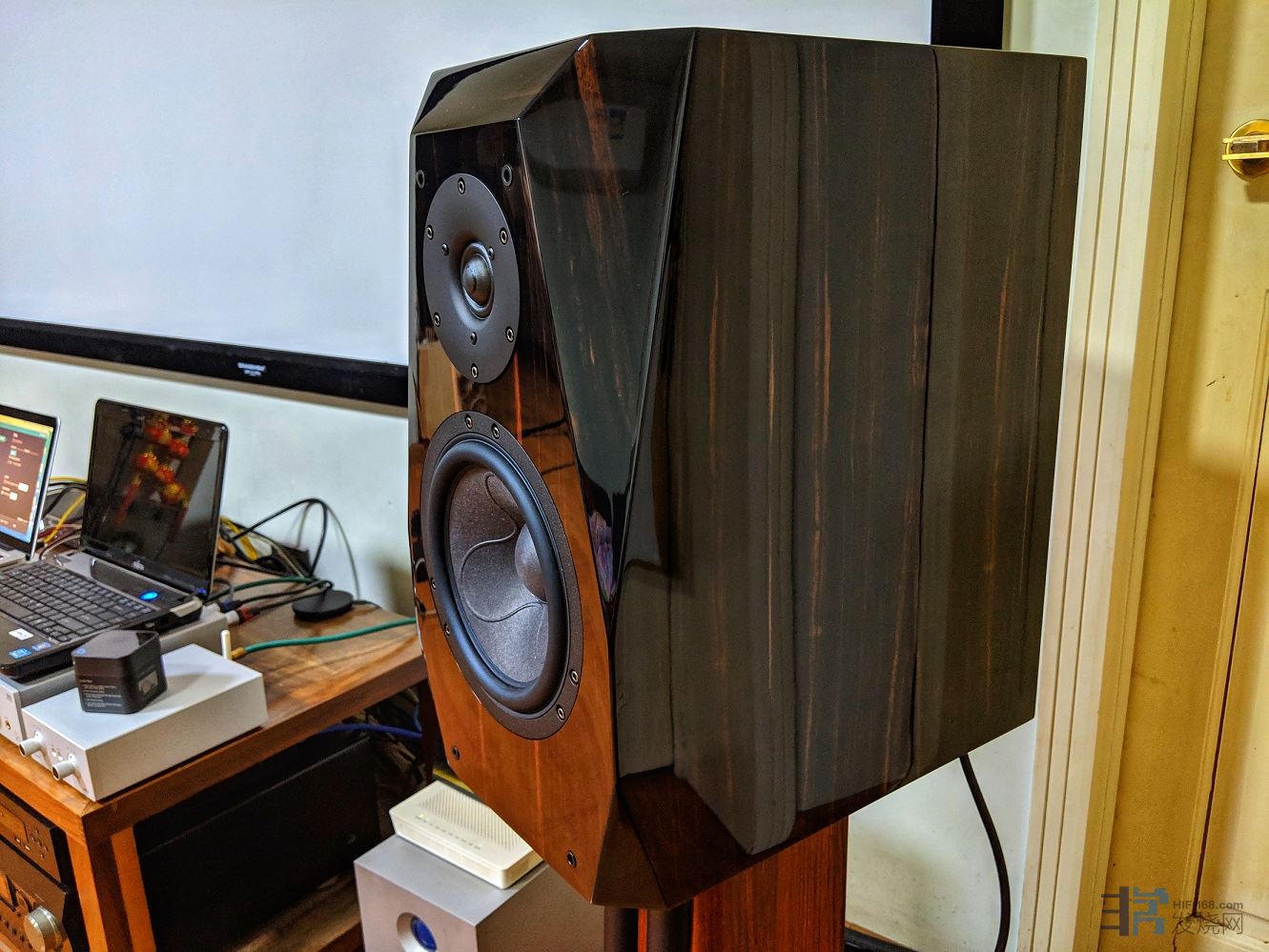 继今年2月下旬H&C开发出新品2单元2分频落地箱—PH1629并在3月份正式发布后,在4月份再次发力推出了书架箱版本的PH1629-R,不同于落地箱版本使用的普通箱体及工艺,这款新书架箱使用了俄罗斯桦木实木箱体,黑檀木钢琴漆工艺,质感非常漂亮,光可鉴人,颜值直逼国外HI-END级大牌的工艺水准,仍使用与落地箱版本一样的丹麦顶级SCAN-SPEAK (绅士宝)6.5寸18WU/8741T00 中低音喇叭单元和1寸D2904/710003 钕磁高音单元,外置数字电子分频处理器和使用H&C的独门调音技术。