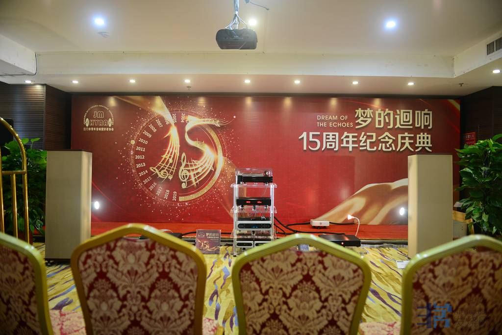 19楼会议厅(主大厅):华富音响代理器材摆布。华富音响公司主要致力于经营世界高端器材,这次提供的器材是最具价值的高端音响产品。器材线材组合极音乐性、高解析、高保真、以高性价比著称。华富音响代理组合的器材有:美国万登庭Vandersteen音箱,霸道Bel Canto功放,爱琴Adcom功放,音乐厅Music Hall黑胶唱机,飞雀Future audio功放。本次活动让音乐爱好者在细品慢听中发现惊喜不断。