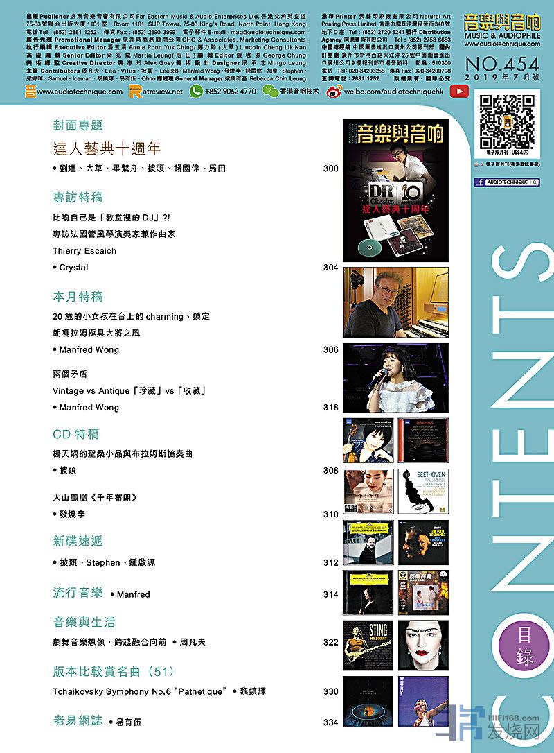 今期的音樂與音响封面專題 : 達人藝典十週年。 專訪法國管風琴演奏家兼作曲家 Thierry Escaich ,本月特稿:20歲的朗嘎拉姆在台上極具大將之風 ,CD特稿:楊天媧的聖桑小品與布拉姆斯協奏曲、大山鳳凰《千年布朗》,其餘的最新碟評、音樂與生活、版本比較賞名曲、老易網誌…等等欄目也是同樣內容豐富,記緊捧場啊!