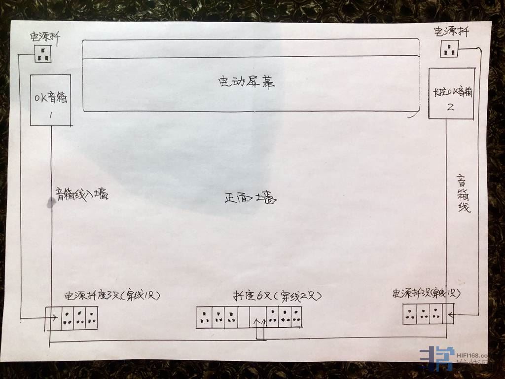 针对主人家强烈要求,不动别的,就照着原始这个布局的环境,我进行了设计。因为主人家喜欢唱KTV,又喜欢看高清蓝光电影及古典音乐现场,所以设计这里要重点顾及到HIFI和AV及卡拉OK兼容,样样照顾到位,防以后升级。先画好图纸,然后施工。