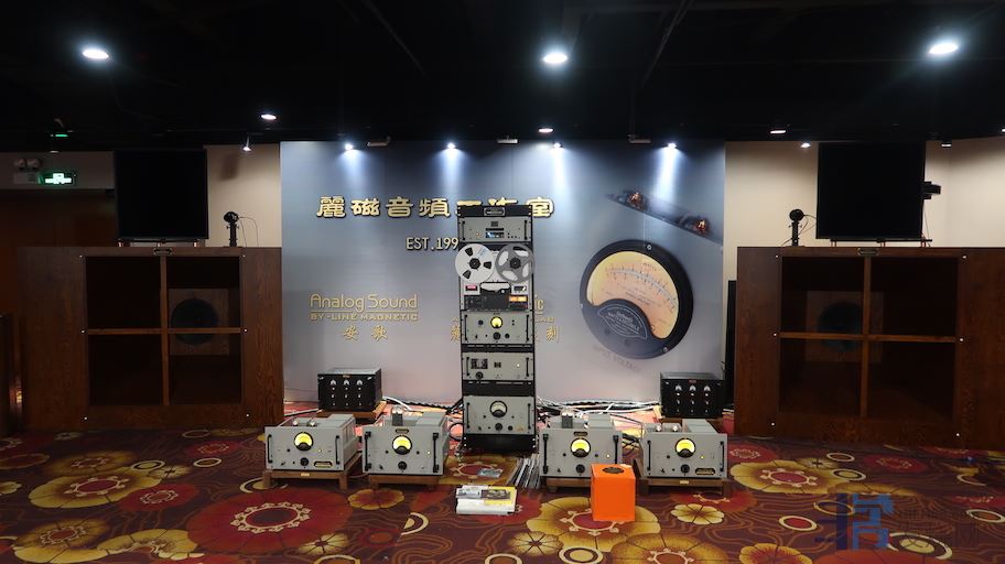 今年广州音展中国大酒店新开辟了地下负一层的展区,偌大的负一层将会有多少品牌在这里呢?Only one。放眼望去只有丽磁音响(佛山丽磁+珠海丽磁)。但就这一个国产胆机品牌。在庞大的负一层空间里几乎建起了个电子管扩大机博物馆。各类型的电子管机器组成了强大的阵列群。不同板块搭配不同的后端音箱,以大口径号角为主。声音方面,由于负一层大平层的相互干扰,说实话无法得出准确清楚的判断。不过以以往丽磁展房的声音表现而言,水准都是相当不错的。