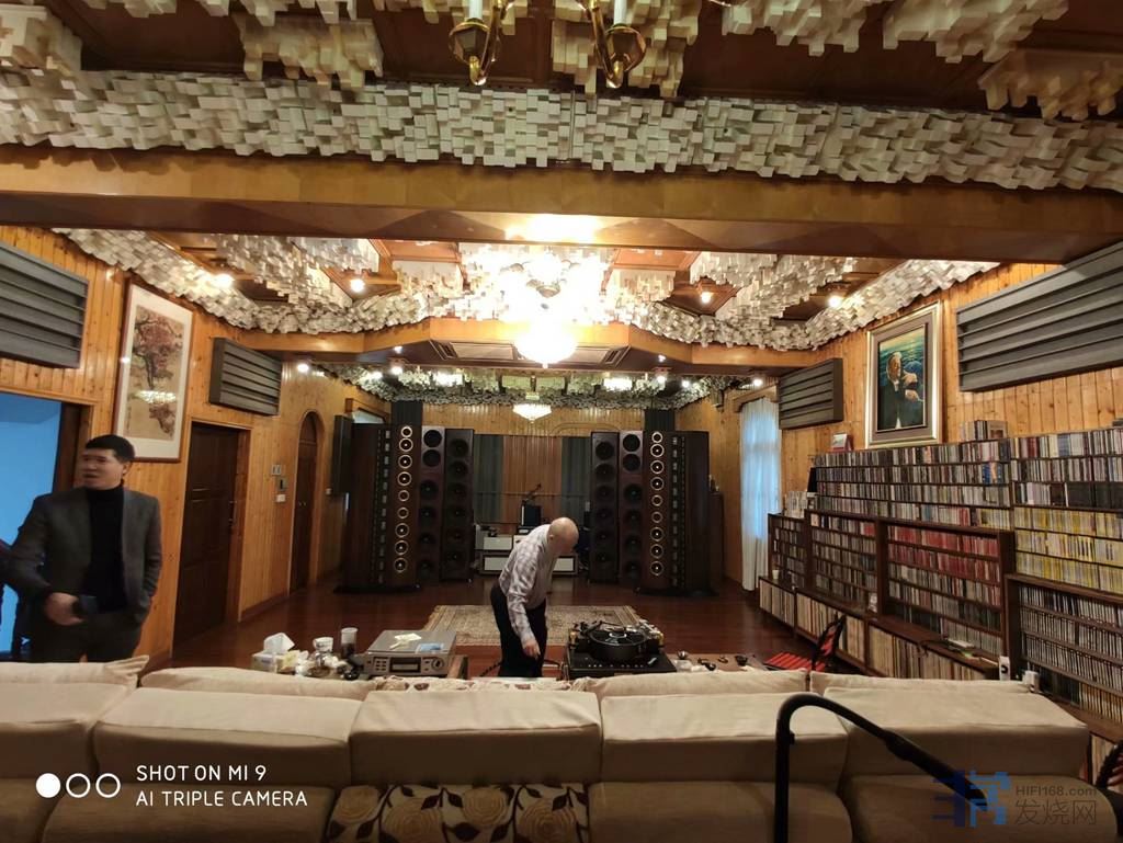 2020年1月12日。顺徳音乐之行---《视听前线》:张主编,阿毕。番禺:发烧李, 老丁;佛山:西电标;顺德:戴戈;中山:礼哥,江门:乐林8t;澳门客;咪哥梁工,刘先生等位。兴趣勃勃继续去顺德区拜访黄先生,黄先生家是别墅听音室,在顶楼建造了一间83平方优雅环境,这间大环境是20多年前由美国燕飞力仕音箱厂家工程师亲自过来指导装修的,装修得体,手工细致,长方形环境,一字摆开,非常壮观,标准环境,调节到位,令听感丰满润泽,细节水份充满着生气勃勃,弹性好有活力,尽情享乐,符合厂家这对四柱燕飞力仕音箱所用的环境。黄先生是第一代的老发烧友,早年在广州番禺易发商场和周先生做音响代理商,所以对世界音响器材了解特别深厚,他二十多年来,一有空就到星海音乐厅或中国有演奏的音乐厅,他都光顾欣赏不同的现场音乐,真是幸福的乐友。黄先生系统相当高档,美国燕飞力仕四分体大箱电子分音,多台后级分推,动态,张力,爆发力,细腻度兼容于一体,心中只有音乐了。先用CD热机后播放LP名盘,黄先生从软件箱里拉出一张LP,是《萧斯塔科维奇第8号交响曲》,这张录音效听说相当不错,由海丁克指挥的名盘,海丁克素为萧斯塔科维奇权威性,所以可听性佳,LP盘缓缓转动,生动兼流畅的感觉出来了,刻不容缓,四个惊人的乐章一一尽示。我特别喜欢第三乐章,在这套美国CELLO四件道+加美国燕飞力仕大箱里,感觉到排山倒海动态兼激亢般动人的场景。海丁克果然不简单,默契老练,沉稳自重。随着海丁克的指挥棒,整个音场展现出生动的灵感。音场相当开阔,那种气势相当澎湃,层次起伏动力十足,弦乐群感相当凌励,爆炸场面够激烈,萧斯塔科维奇作品有战争打斗的浩瀚景象,又有十足的火药味,是部令人振奋的交响作品。 值得一听。我在唱片架上抽了一张绝版LP《阿岗小提琴》拉罗作品,名盘中的名琴名人,珍稀之LP作品。阿岗琴技真是优美,乐队色彩艳丽,小提琴细节动感,阿岗的得意之作。阿岗能轻易呈现奏出《拉罗》鲜活的生命力,琴音绕梁如此无媚之声,细腻而宽广的规模感呈现于眼前,这就是阿岗琴技的独特之处,具有非常抒情化的感觉,那股潺潺流入心中的明净溪流小提琴音丝毫无晦涩之感,完美之音,清约襟怀,相当过瘾。来张邓丽君《岛国情歌》LP首版,邓丽君的LP是特别动听于CD碟的,邓丽君演唱技巧空谷幽兰,简单明了,她的嗓音清晰磁性宽厚,温柔中微带蓝色忧伤,在这个系统里表现饱满温和,配乐干净透明细润,邓丽君歌声细水娟娟,尾娓娓道来,感情婉转自心而来,美而好听。一张林子祥《活色生香》LP名盘,林子祥发自肺腑触人心灵的演唱,呈现出的高贵质感、无丝毫修饰尽情展现,林子祥胸腔里尽显温婉人情气息,在浩瀚配乐音符海洋中画龙点睛,在低吟浅唱中震撼着听者的心灵,歌曲蕴藏着歌唱者的激情,承载着听者的记忆,实现了歌唱者与听者的共鸣,好器材,好享受。《黄先生珍品CD及LP软件太丰富了,近8万张之多,首版绝版断版LP软件特别丰富,令人叹为观止。今晚大家开心在无敌的燕飞利仕音箱森林及软件森林之包围下享受音乐,更有优雅氛围及真实感,音乐再次响起,感受到特别投入和刺激,静下心让您有时间慢慢地适应和感悟音乐。这个德国多能仕顶级唱盘+两支顶级唱臂+德国清澈金手指顶级唱针+美国CELLO四件套后级加上12粒前级调色版音响让音乐象陈年普洱靓茶一样可以慢慢泡,慢慢地品味和享受。。。。。谢谢黄先生靓声器材。