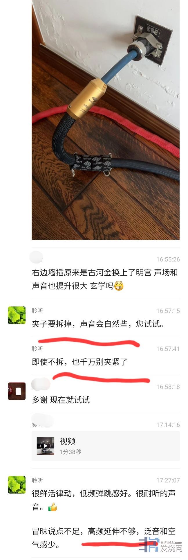 后来有客户咨询一些带夹子的排插好不好声,镁声也建议拆掉夹子。昨天这位烧友也碰到同样的问题,截图如下: