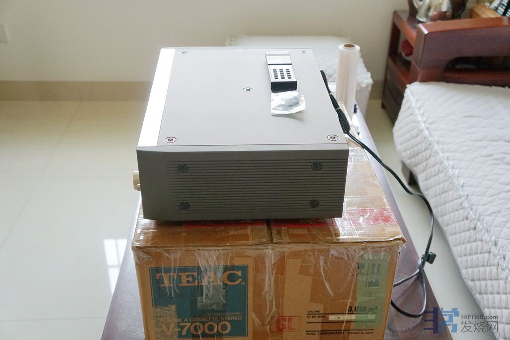 出日本TEAC卡座 经典TEAC-V7000三磁头立体声卡座,香宾色面板,220V电压,浓郁的模拟味,音色好,层次分明,收自卡坛版主老猪,成色极新(实物图),机器原汁原味(老猪版主保证机器为出厂状态,无标调过,),磁头基本无磨损,本人买来时内部清洗过一次(刚买来时播放速度有点慢,打开发现里面飞轮皮带很久没用有点脏,就拿专用清洗剂清洗),机器绝对无修无摩,无磕无碰,无暗病,现在录放效果一流,状态一流,除了四类带偏磁调整有时无法到位(一二类带轻松到位),其他功能全部正常,原包装.遥控.再送一套备用皮带,(已出)