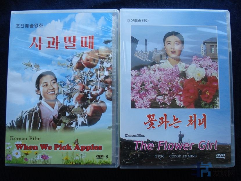 全新朝鲜原版DVD《卖花姑娘》及《摘苹果的时候》,朝鲜电影业鼎盛时期的《经典电影系列DVD》中的两部电影,由朝鲜国家木兰音像社用于对韩语区、英语区和汉语区的对外宣传,带有朝、英、中文字幕及英、中文字幕。《卖花姑娘》及《摘苹果的时候》由朝鲜艺术电影制片厂拍摄于朝鲜鼎盛时期的1971年和1972年,《卖花姑娘》由金日成编剧,金正日导演。DVD制作于2011年(主体100年)及2014年(主体103年),现已绝版。