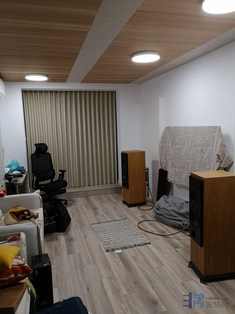 但反观这个案例,小刘的老房子由于房间处理太过,也导致了后期摆位提升有限。所以我一直跟身边朋友说,声学处理和摆位息息相关,承上启下。另外,摆位不仅仅是摆喇叭,还包括了声学道具位置的摆放和用量。这些东西没有绝对的规定,而是要根据当下环境和系统能量输出的耦合结果而定,皇帝位、空间的六个面都是变量,不变的是你心中的听音标准。在调整的过程中也是互相穿插,不可一路到底。稍后我会在工作室声学调整发文里分享。
