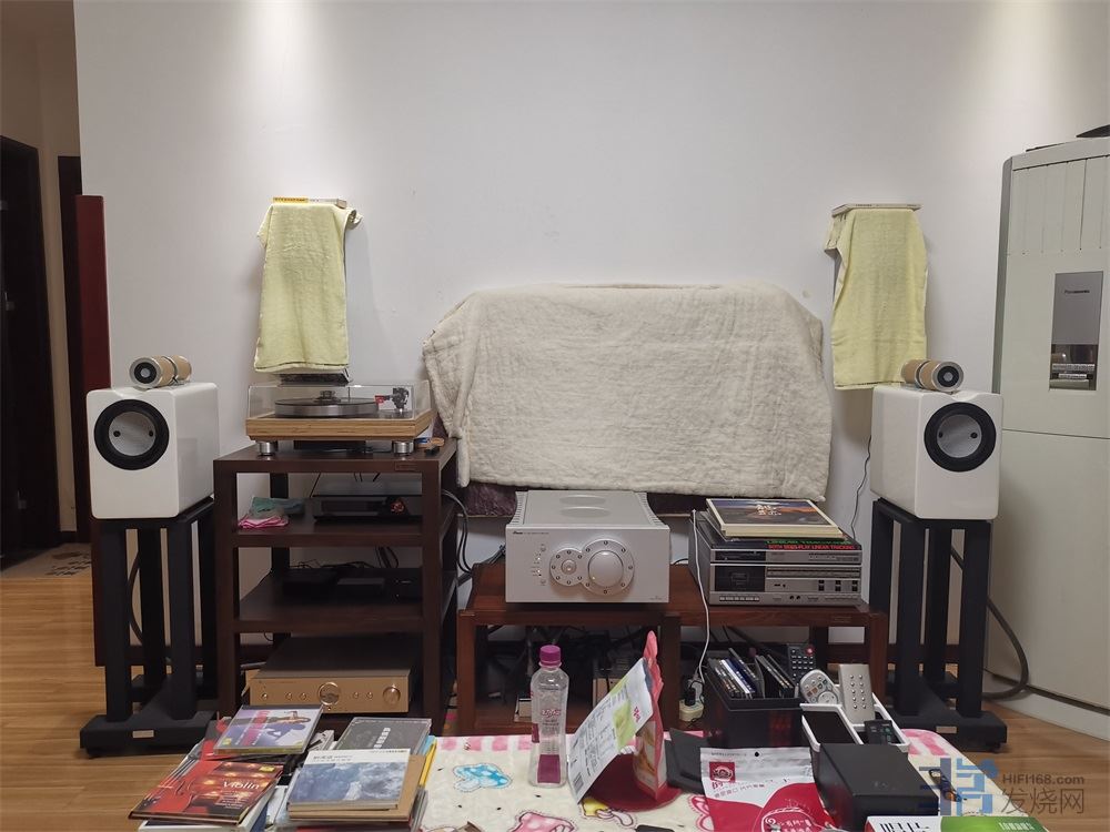 (3)可能比较挑环境和线材,因之前的OPUS1声音偏暗,所以用的全套铜镀银的线。但对现有环境下的LUNE而言,全套镀银线(国产、档次一般)加上房间墙面太光滑,墙上没有任何装饰,沙发前还摆了一张玻璃茶几,导致中高频有的频段偏亮偏冲。换成纯铜线并在沙发墙上暂时挂了空调被,茶几上覆盖了一层小绒毯后,声音就正常了。