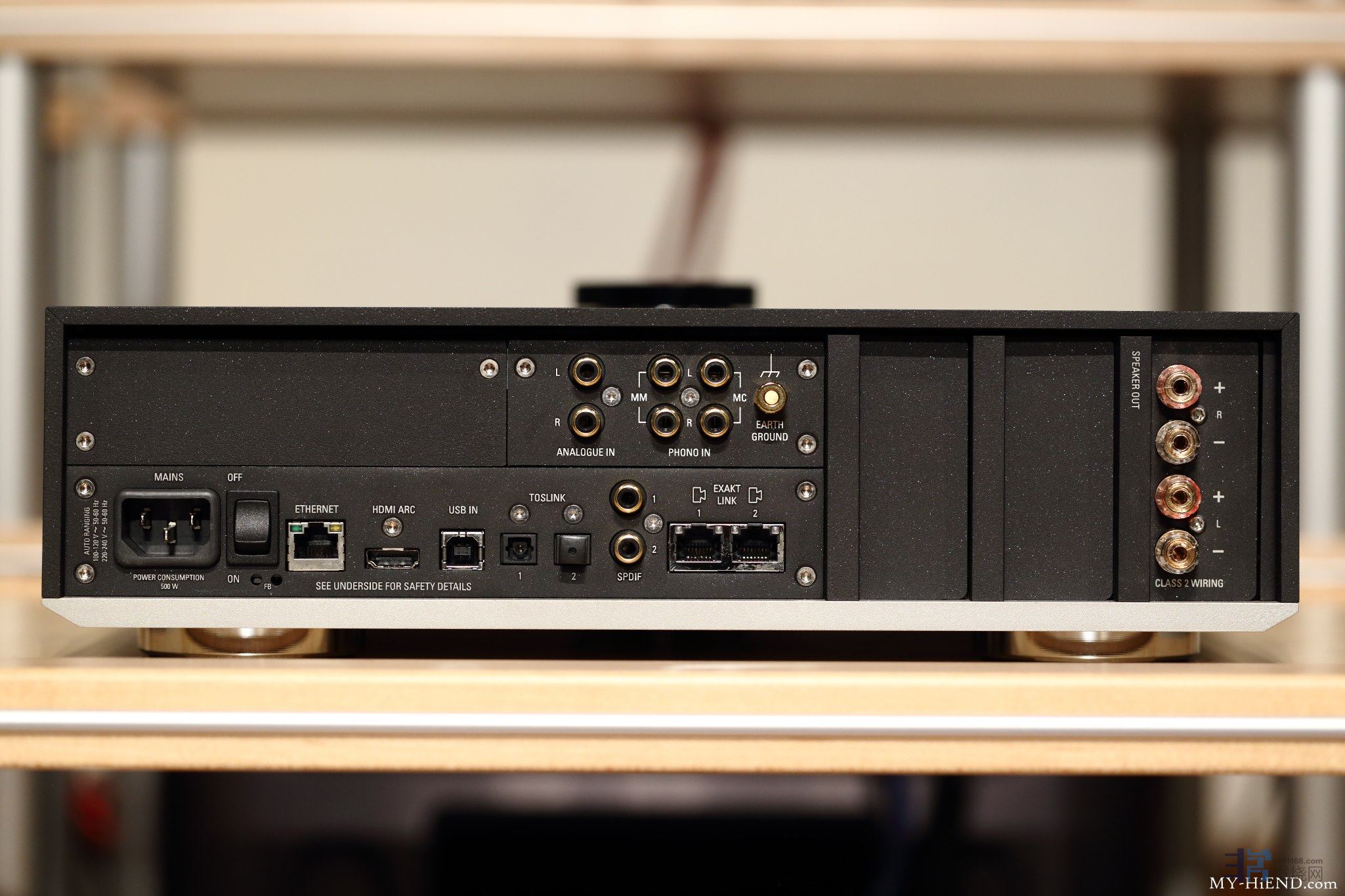 详看Linn Selekt DSM的后面板,提供了多种输入来源,数位方面包含网络、HDMI、光纤、USB、SPDIF(RCA),几乎已经对应有可能使用到的讯号来源,网络串流、电视、蓝光播放机、CD播放机、计算机等,将其设定到快捷键上,就连家里不懂音响的夫人们都能轻松切换,只要告诉她电视打开后最左边的快捷键按一下就能开声音,最右边就能看蓝光电影,甚至用手机平板追剧的话可直接开蓝芽,这么方便,入手Selekt DSM还能有阻力吗。在模拟输入方面提供RCA两声道输入与唱头输入,Selekt DSM内建了唱放模块,并能切换MM与MC,同样能一键切换,方便的很。另外提供了一组EXAKT LINK,则是对应自家主动式喇叭使用的独家连接方式。