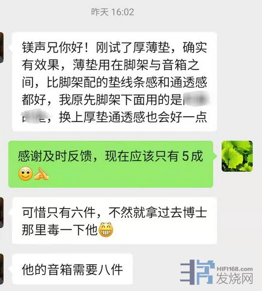 我的二付厚垫和一付薄垫已在路上,期待中。到时反馈。镁声做钉入行的,应该差不了,哈哈哈 yangxfeng 发表于 2022/1/24 15:12:11