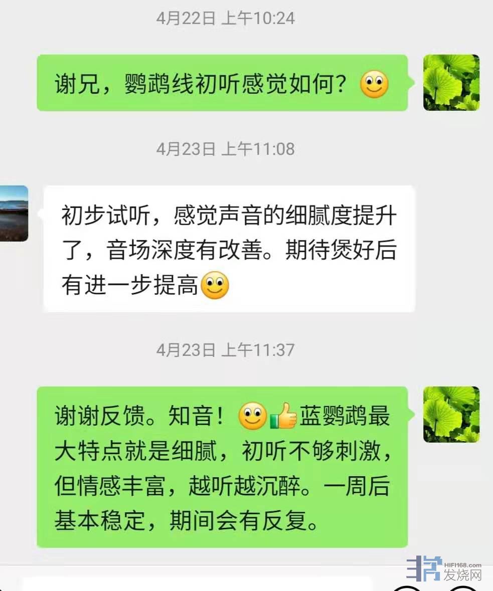 退货不做任何要求,可以把这几天抢到的线全部退掉。千万别不好意思。您付运费试听镁声的线材,已经给镁声机会了,如果镁声线不能打动您,那是镁声技术和调声不过硬,本人需要深刻反省,怎么会怪买家呢?需要说明的是,这批线材都是全新制作,大家收到后,请插上系统使用一周才下结论,不要一耳朵感觉和之前自己的线听感不同,不适应,就马上退货。镁声线是全部校准电气方向的线材,所以新线也绝不会刺耳,但需要使用几天音场和两端才能充分打开。
