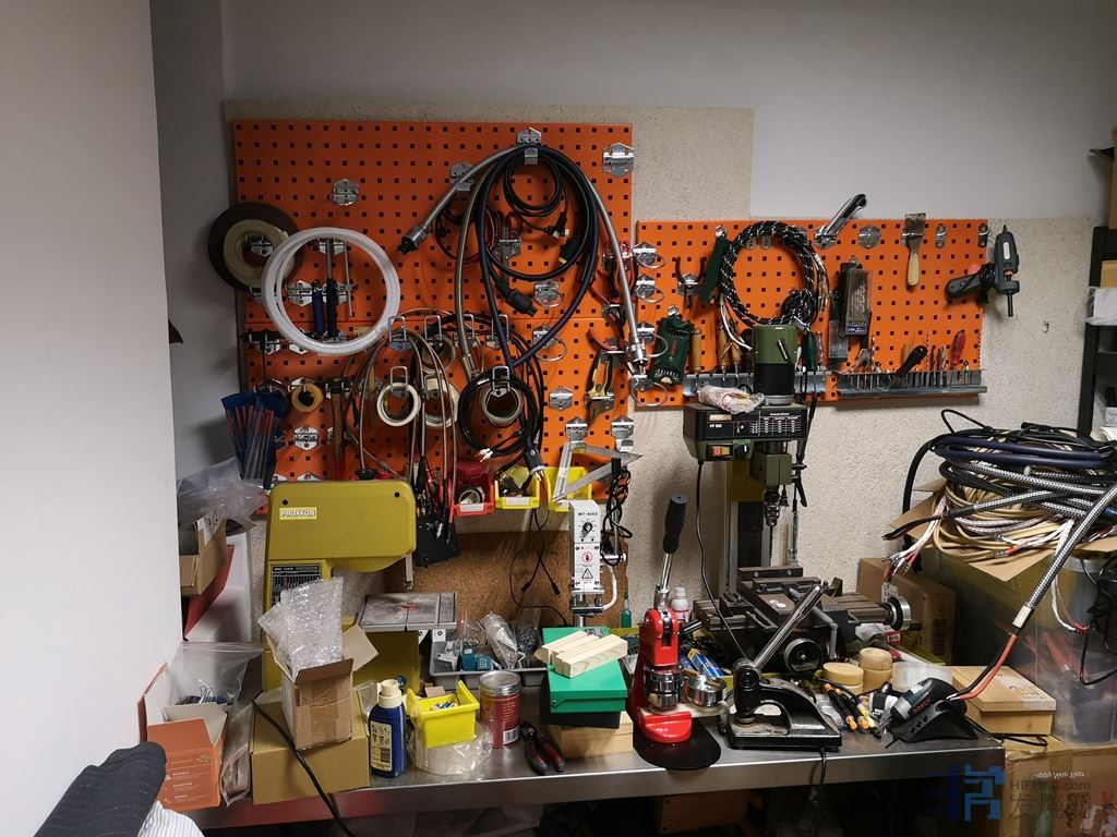 吴先生不仅继承了父亲的音乐细胞,还遗传了强大的动手能力。自己DIY功放和喇叭,工作室里堆了各种有趣的东西。但从声学的角度来说,东西并非越多越好。由于吴先生的工作室可能要搬,所以他在犹豫是否要彻底搞声装。其实,现在的声学模块拆装方便,而且用量基本跟环境大小成正比,所以只要新的环境大小相当,基本可以沿用下去。至此,我们从拉专线开始,来了场大改造。
