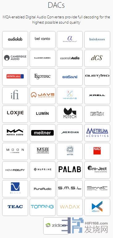 在MQA主页,我们可以查到支持MQA的音响牌子。
