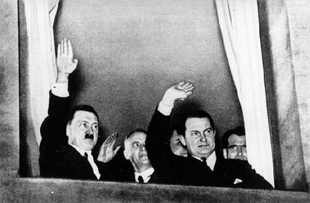 1933年1月30日,Adolf Hitler当选德国总理,当天,纳粹党在柏林举行了盛大的火炬**庆祝Hitler当选,照片显示Hitler和Herman Goering站在Hitler新办公室的窗户前向**的群众致意。纳粹运动对Alma乐队的第一次巡演造成几乎毁灭性的打击。