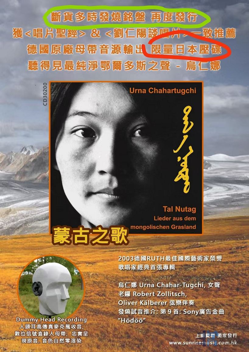 (日本制碟/限量發行)傳唱發燒界30年,烏仁娜<蒙古之歌> 音質再精進!!