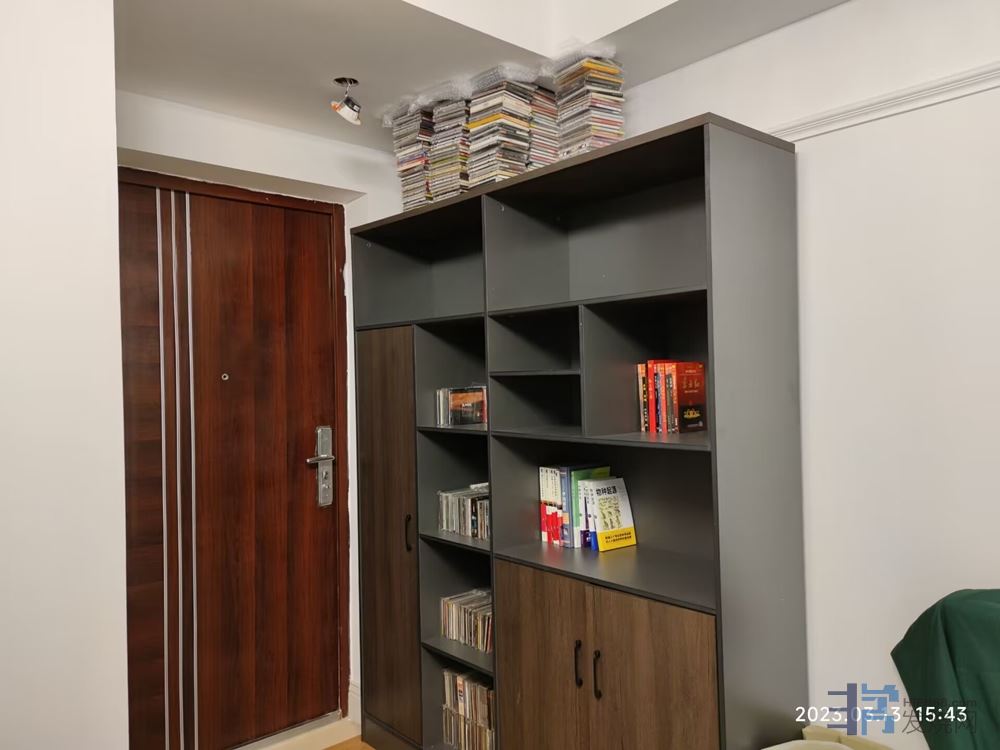 另一个重要的道具忘记了,就是这个书柜,不带玻璃柜门的。搬到听音室后,声音瞬间安定了不少。为什么要放这里呢,请看上面,俺放了一堆的CD那里。那里的吊顶里面龙骨没有固定好,结果低频一出来,就会滋滋的响,烦死人。找到原因后,自己把灯拆开来,在里面塞了很多的吸音海绵,没毛用。后面又用CD顶着(花费CD共200张,全是进口的正版,至少1万多),还塞了一套小人书进去,48本的三国演义,才算勉强解决了问题。虽然也还有,但轻微多了。装修的师傅没固定好,后面整死人。