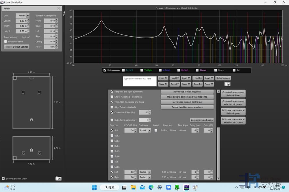 中间通过仿真软件调音箱的摆位,把房间参数输进去,俺动了动小手,就搞定了,真方便。