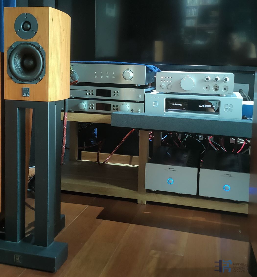 经过一个星期的试听,前端搭配的音源:棒子10多年前的次旗舰Aurender s10+国产王工的艾诗Mdac6解码器(兼前级+耳放),在两台补品Silent Angel仙籁N8网络交换机的加持下,无论是用同厂的XA3200MKⅡ胆前级RCA端子接入XA8800MNu分体后级,还是用艾诗Mdac6前级的平衡口接入XA8800MNu分体后级,ATC SCM7书架箱完全被XA8800MNu推开了,这对箱子该有的中低频,全部显现!瞬间觉得小7物有所值,完全脱胎换骨的声音和气质!