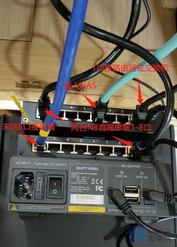 仙籁官方推荐的N8网络交换机的组网连接图,奢侈了一回,我按官方推荐,用了两台N8,咸鱼N8价格并非高高在上